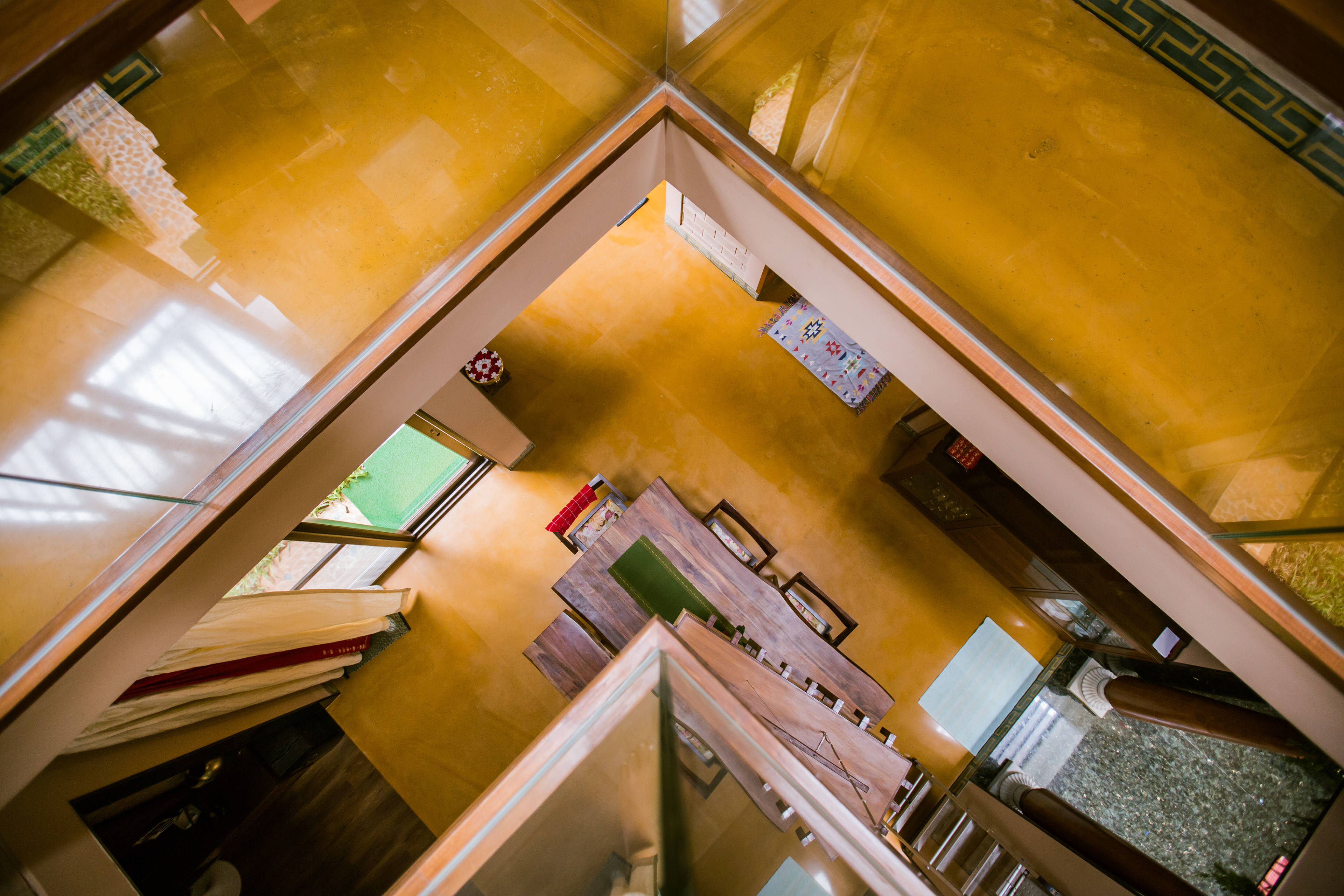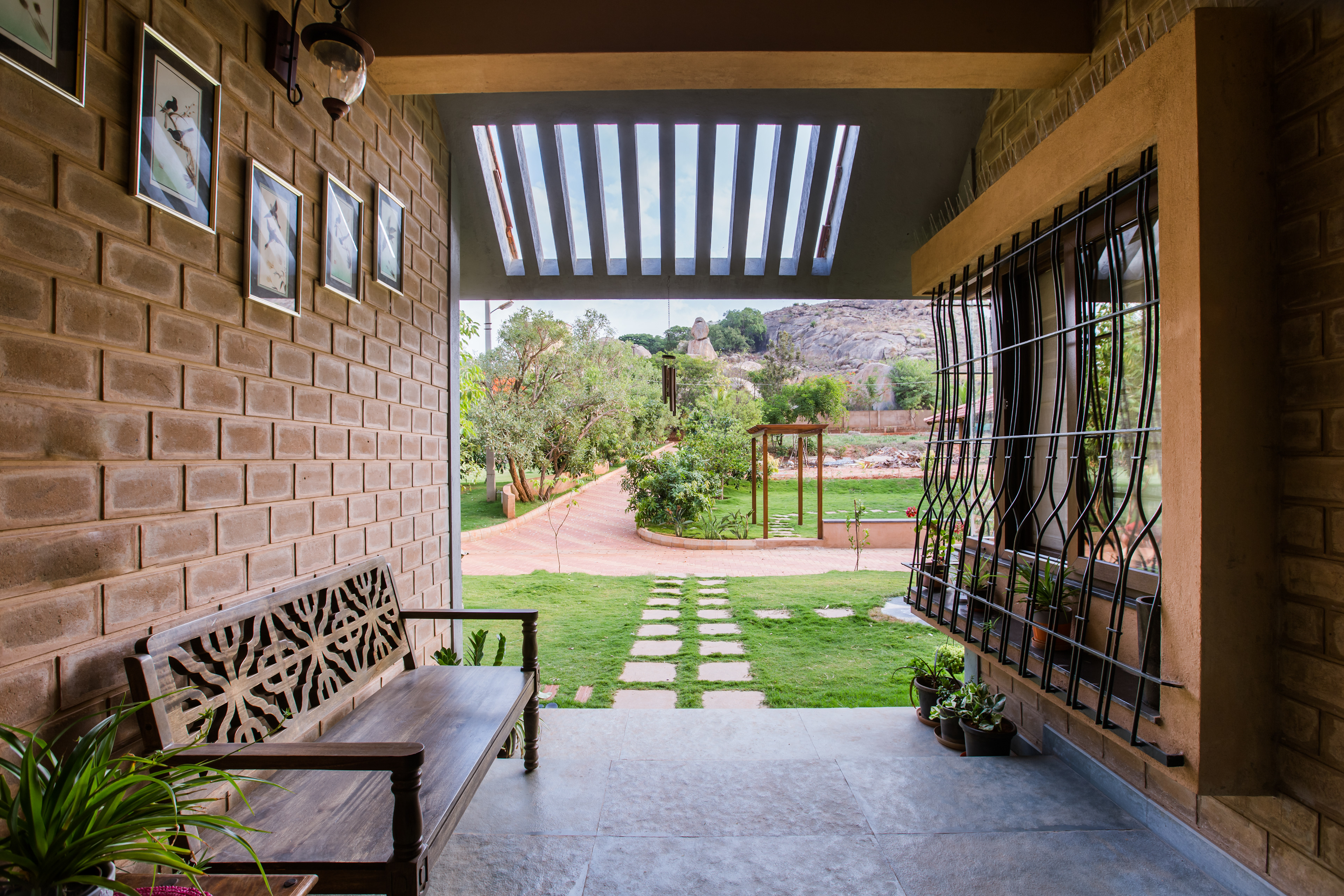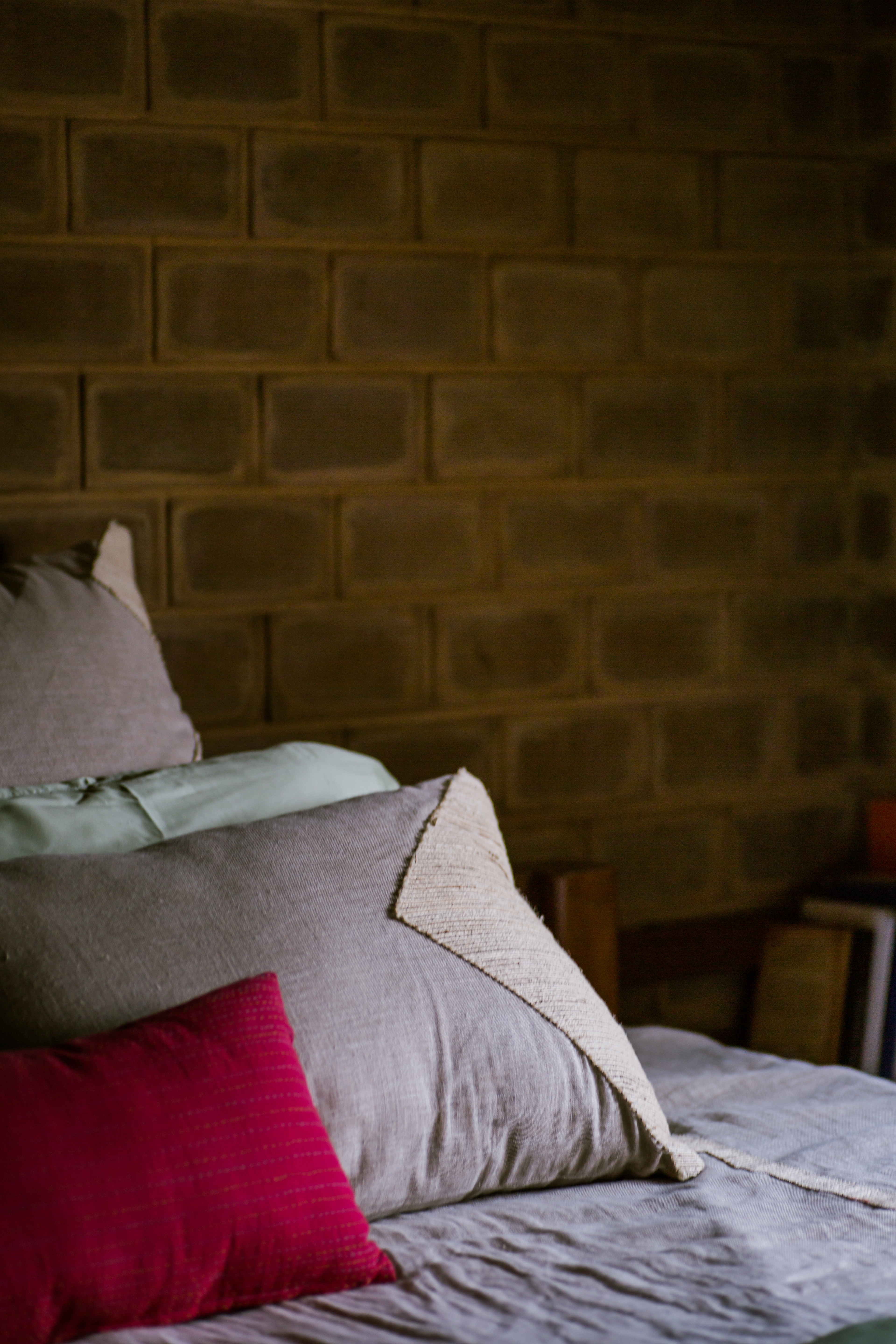 Three identically yet personalized homes for a large family. Made fully with stabilized mud blocks and bright yellow Jaisalmer flooring bringing back the village home and connected to nature.
