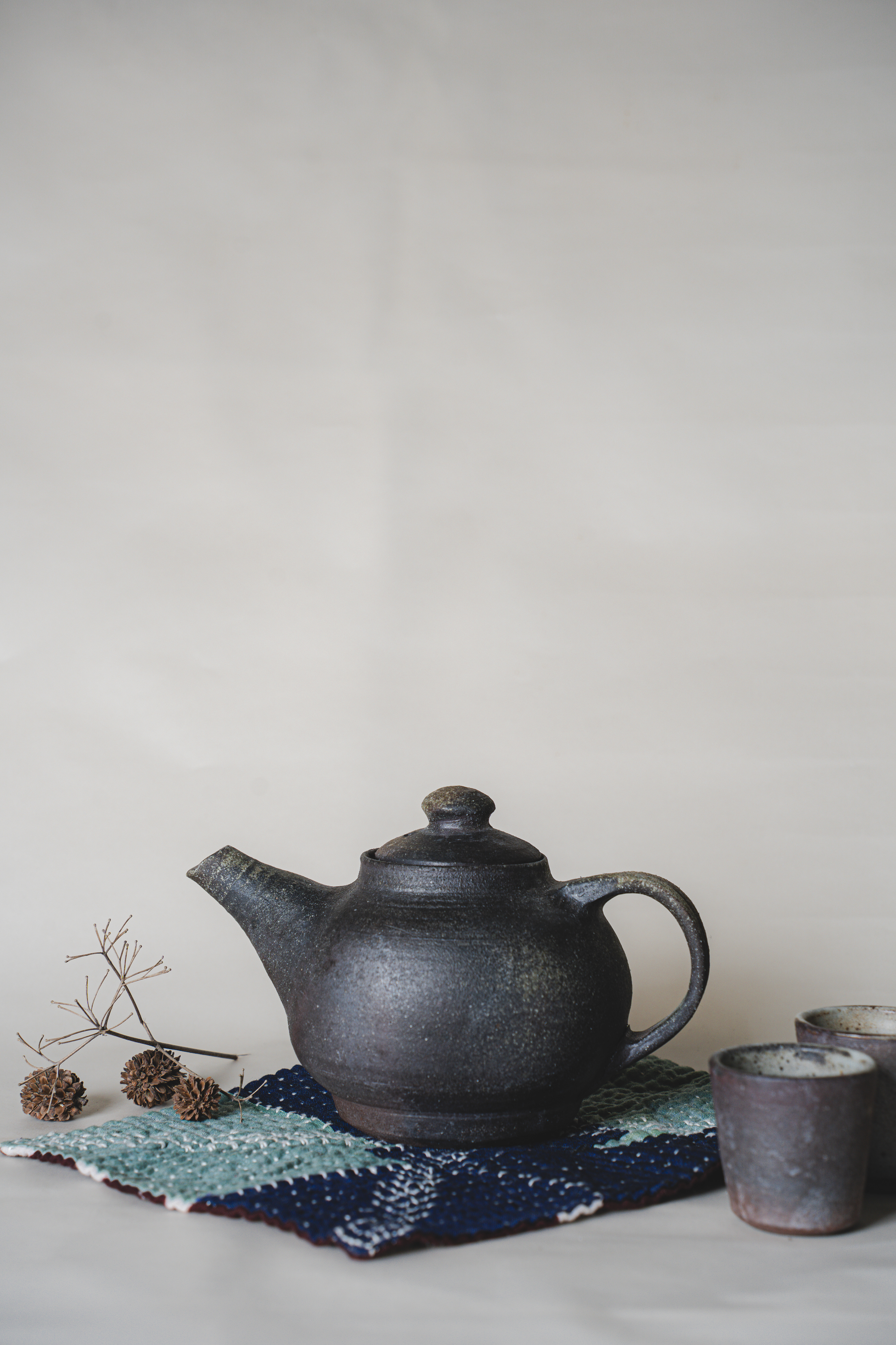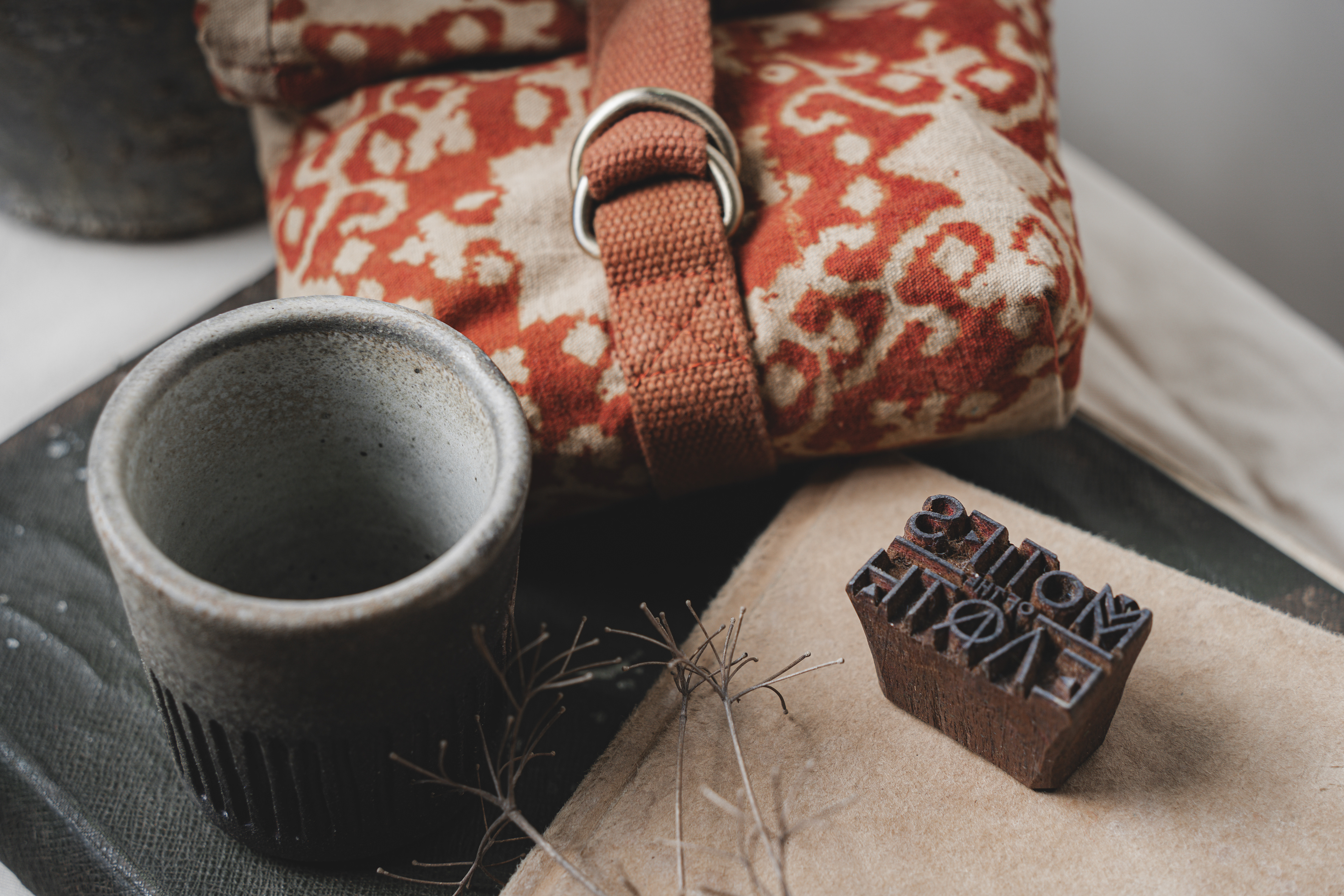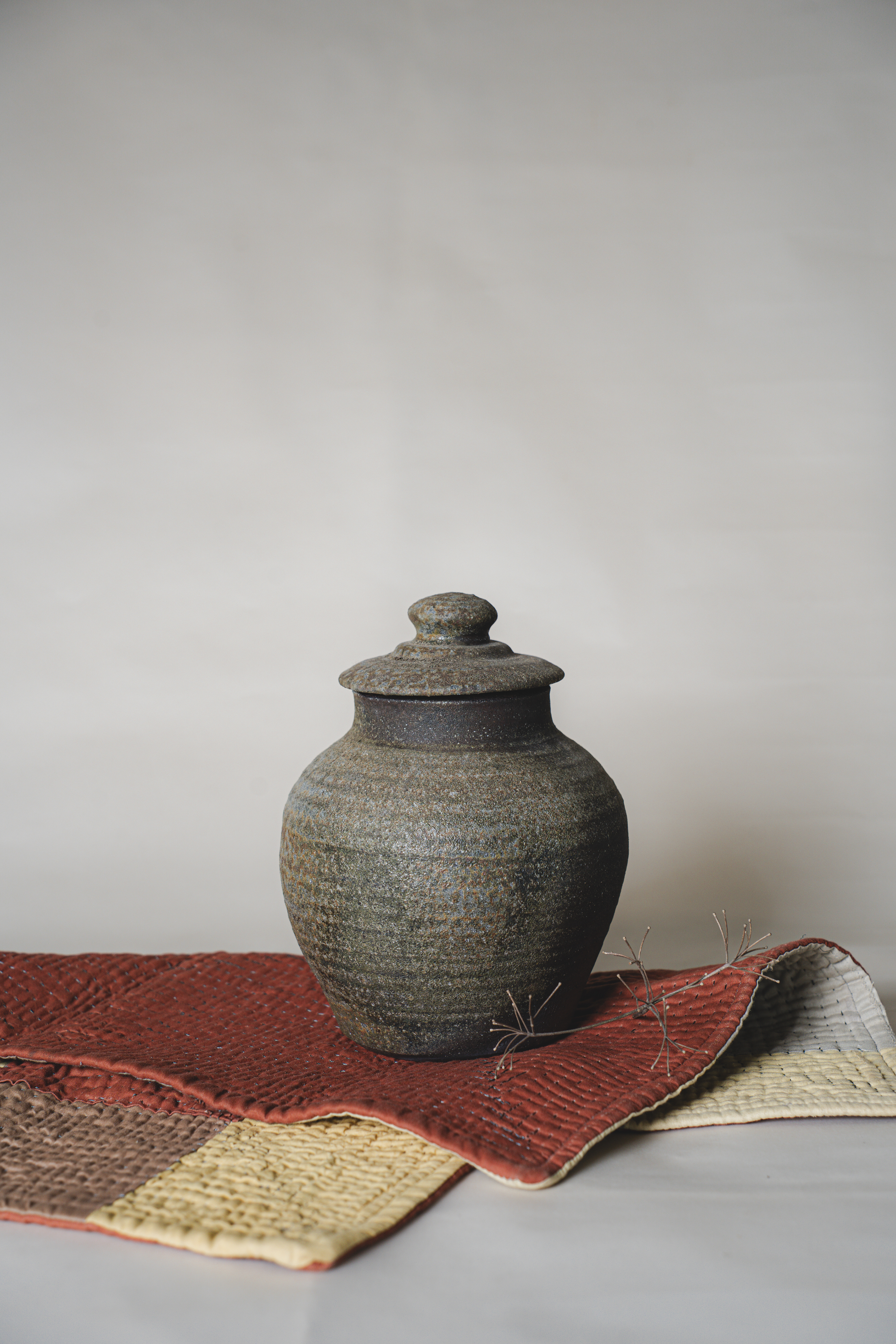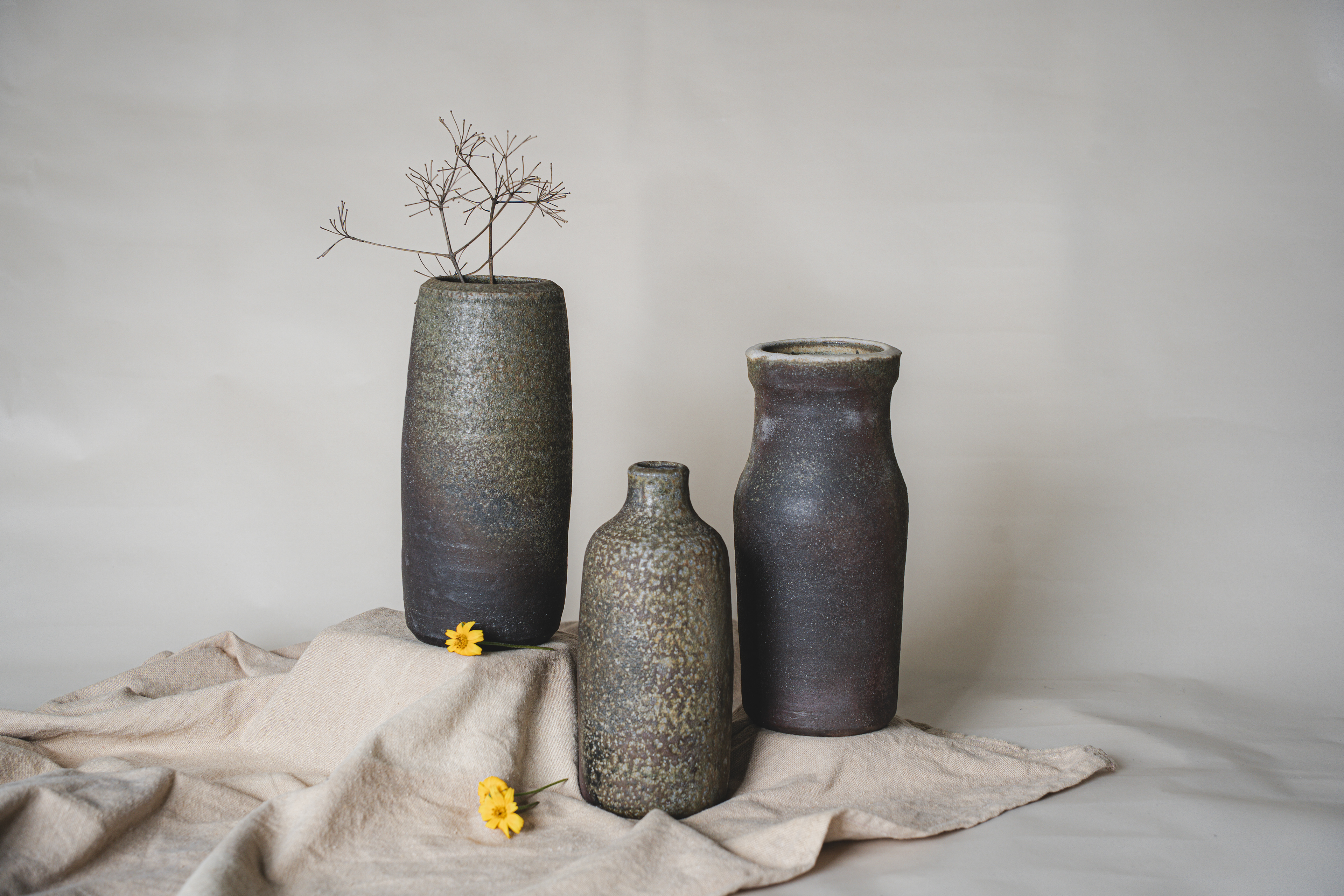 A range of wheel thrown, wood fired stoneware articles hand crafted by Prajna Rajanna, Motifs Of The Earth.