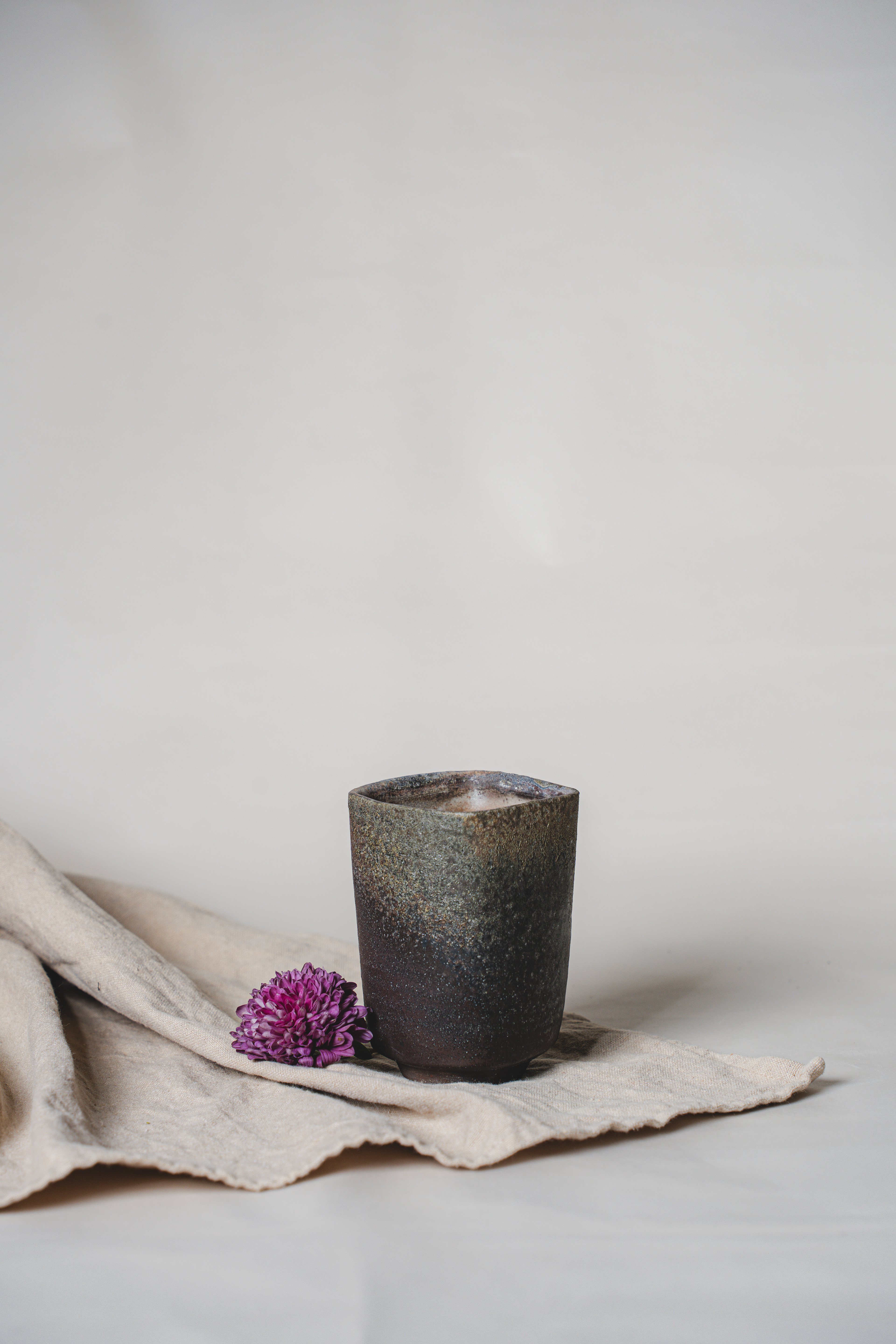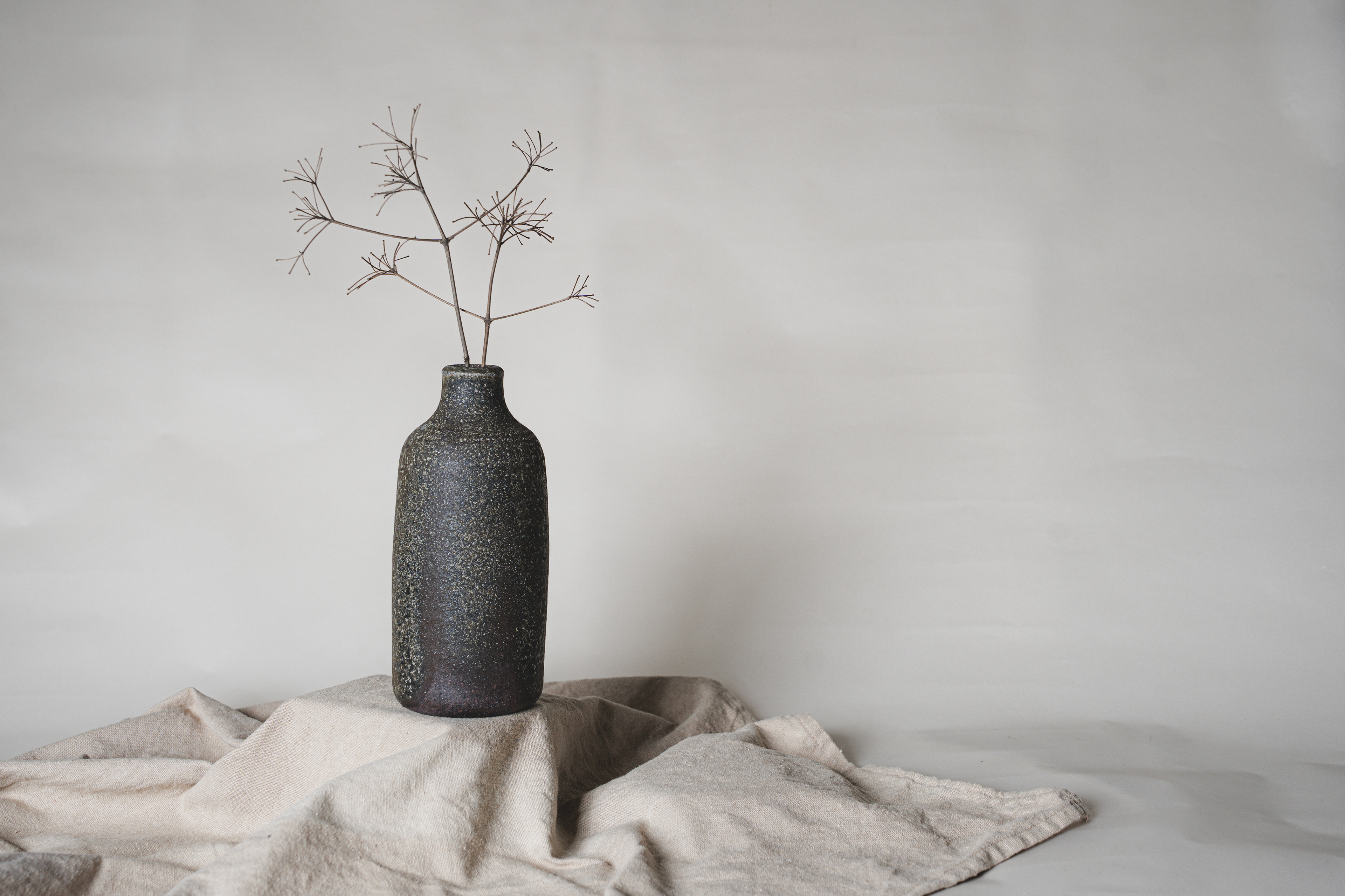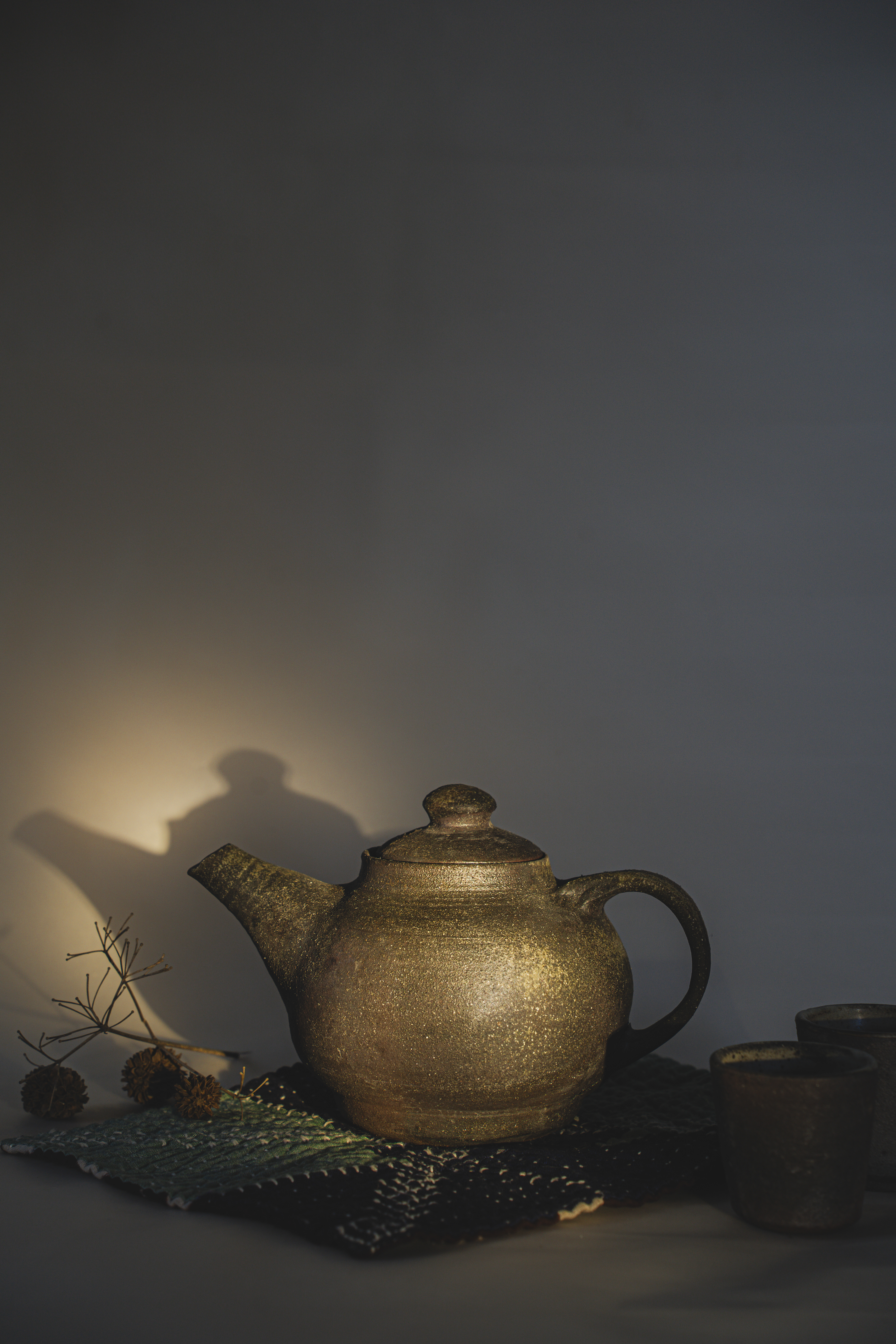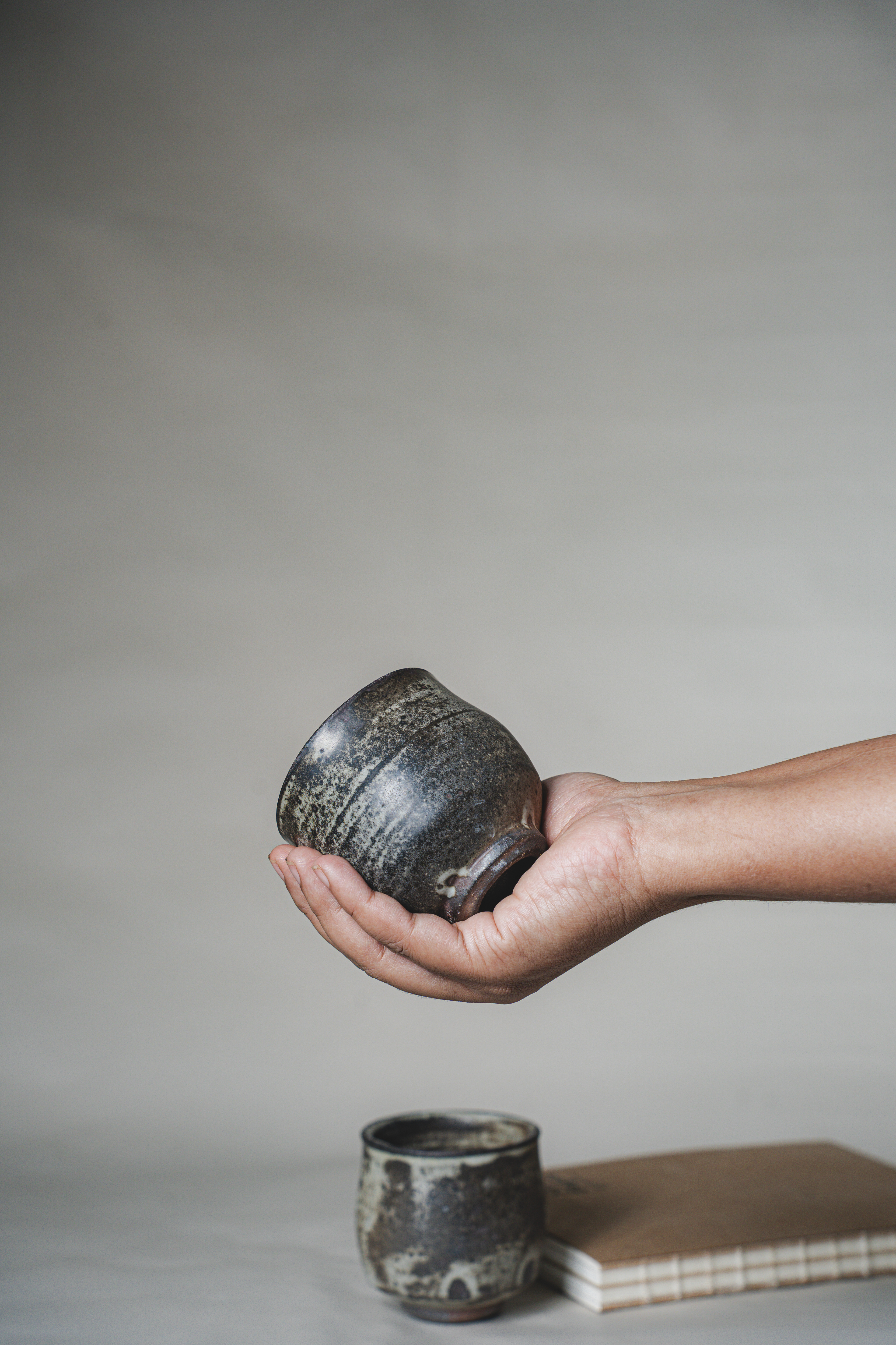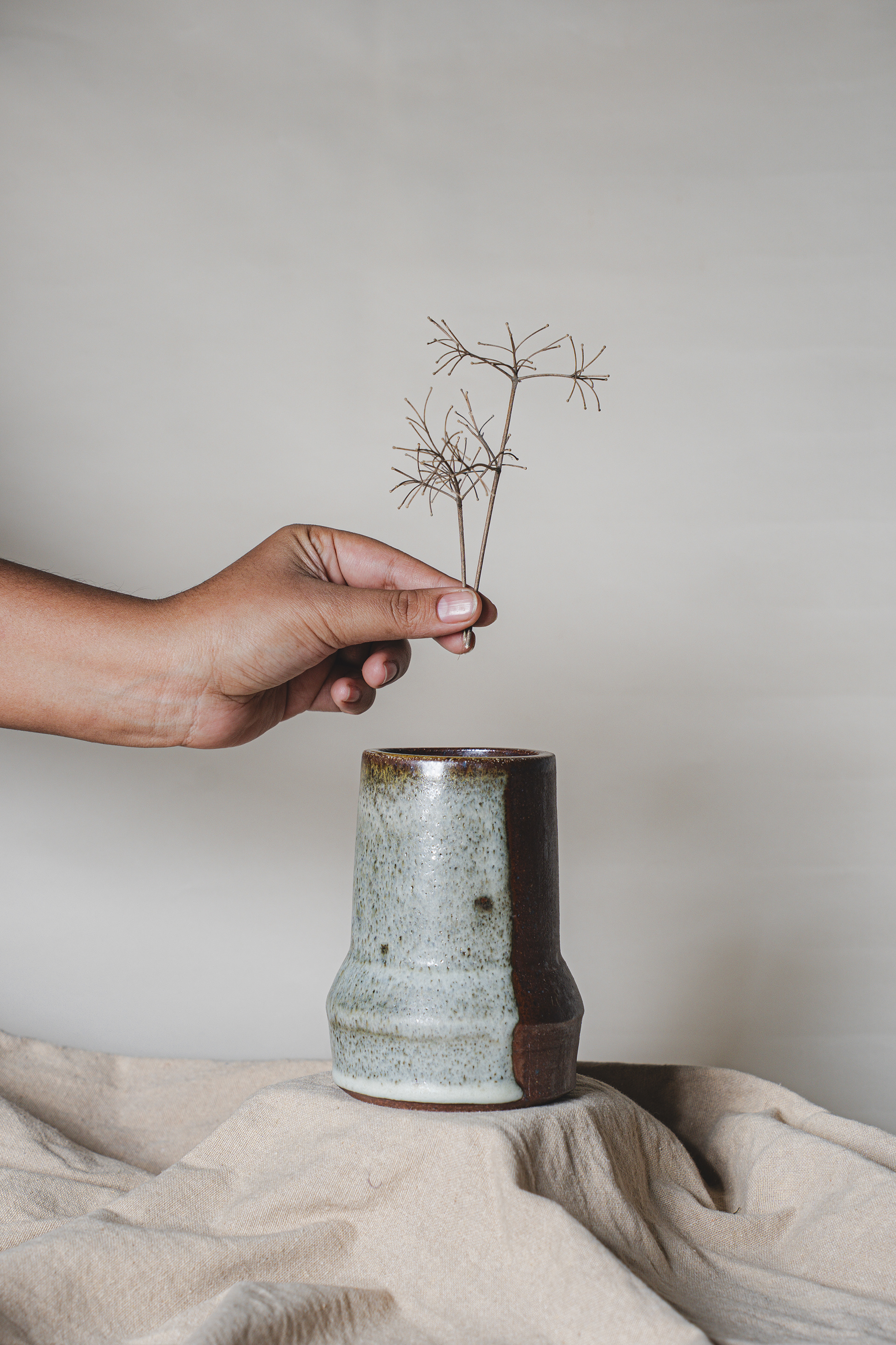 A range of wheel thrown, wood fired stoneware articles hand crafted by Prajna Rajanna, Motifs Of The Earth.