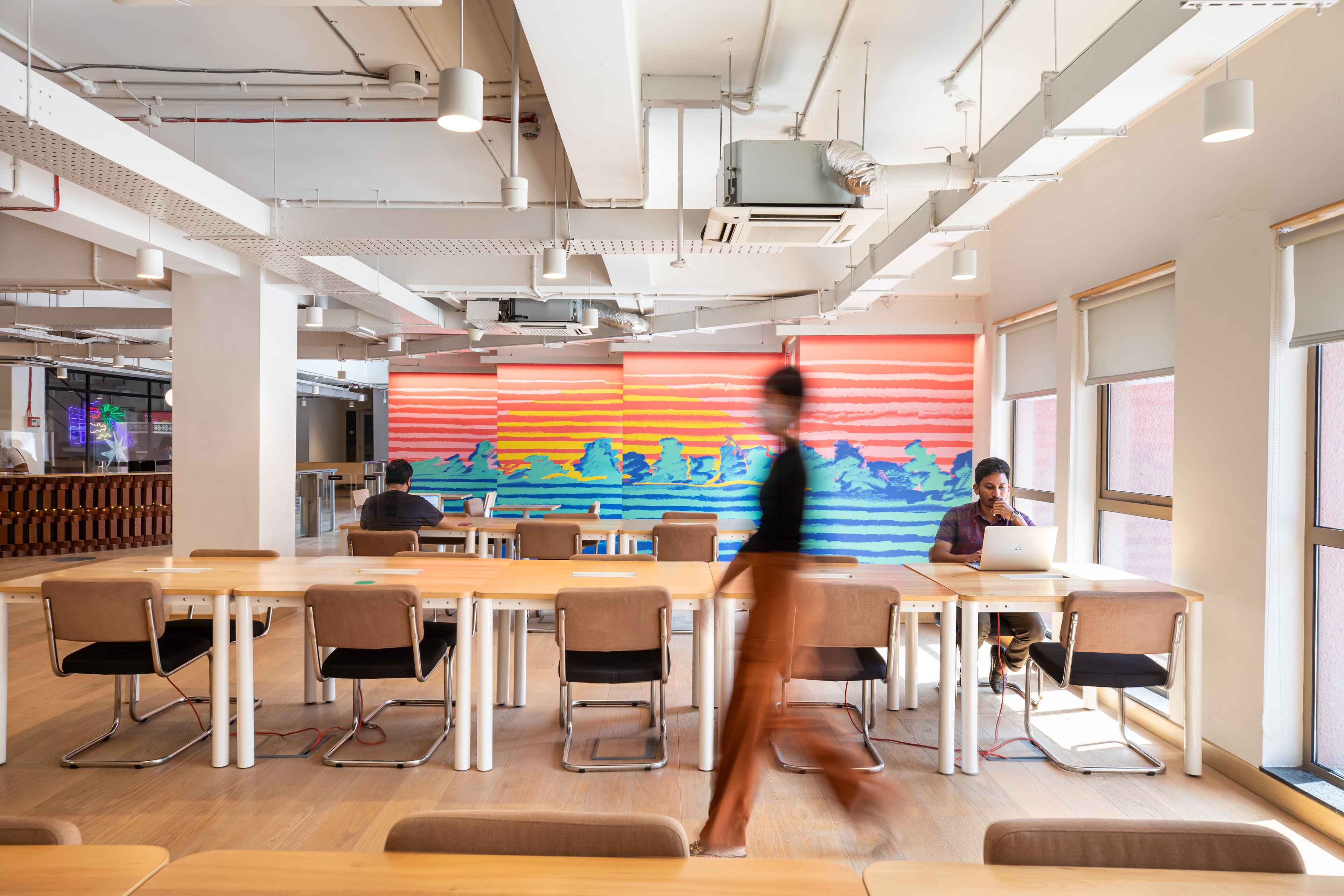 Wework Bengalurua co-working community across the globe has been redefining workspaces with so many artistic and innovative spatial designs and color schemes. Each build has its our language and story to narrate.